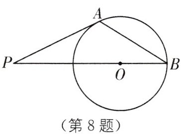8. 如图,PA是$\odot O$的切线,A为切点,PO的延长线交$\odot O$于点B,连接AB.若$∠P= 26^{\circ }$,则$∠B$的度数为(