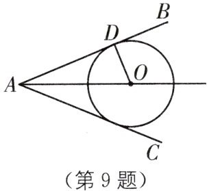 9. (2025·广东广州中学期中)如图,$O为\angle BAC$平分线上一点,$OD\perp AB于点D$,以$O$为圆心,$OD为半径作\odot O$,求证:$\odot O与AC$相切.