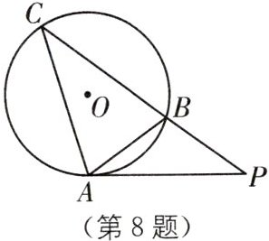 8. 如图,$P是\odot O的弦CB$延长线上一点,点$A在\odot O$上,且$\angle C= \angle BAP$.求证:$PA是\odot O$的切线.