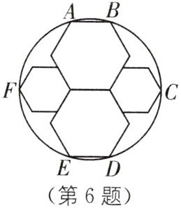 6. 已知四个正六边形如图摆放在圆中,顶点 $A,B,C,D,E,F$ 在圆上.若两个大正六边形的边长均为2,则小正六边形的边长是( ).