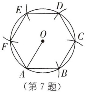 7. (2024·天津西青区期末)如图,已知点 $A$ 是半径为3的 $\odot O$ 上任意一点,以点 $A$ 为圆心、 $OA$ 为半径作弧,交 $\odot O$ 于点 $B$,以点 $B$ 为圆心, $OA$ 为半径作弧交 $\odot O$ 于点 $C$,同上述作图方法逆时针作出点 $D,E,F$,依次连接 $A→B→C→D→E→F→A$,则这个多边形的周长为______