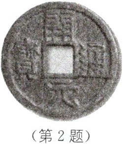 2. 传统文化 古钱币 如图,一枚圆形古钱币的中间是一个正方形孔,已知圆的直径与正方形的对角线之比为 $3:1$,则圆的面积约为正方形面积的(