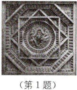 1. (2025·北京大学附中期中)如图,北京隆福寺毗卢殿明间藻井现藏于北京古代建筑博物馆中,其设计独特,由正八边形、菱形和圆形组合而成.中间雕着一条栩栩如生的盘龙,由整块金丝楠木精雕细琢而成,细节之处彰显匠人技艺.其中正八边形一个内角大小为(