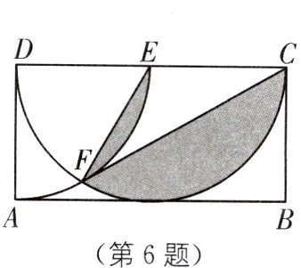6. (重庆两江新区自主招生)在矩形ABCD中,以D为圆心,DA为半径画弧,交CD于点E,再以CD为直径作半圆交弧AE于点F,连接CF,EF,若$AB= 2AD= 10$,则图中阴影部分的面积为____.