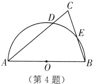 4. (2024·广安中考)如图,在等腰三角形ABC中,$AB= AC= 10,∠C= 70^{\circ }$,以AB为直径作半圆,与AC,BC分别相交于点D,E,则$\widehat {DE}$的长度为(