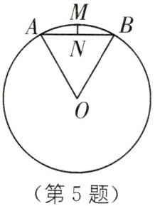 5. 传统文化 会圆术 《梦溪笔谈》是我国古代科技著作,其中它记录了计算圆弧长度的“会圆术”.如图,$\widehat {AB}$是以点O为圆心、OA为半径的圆弧,N是AB的中点,$MN⊥AB$.“会圆术”给出$\widehat {AB}$的弧长l的近似值计算公式:$l= AB+\frac {MN^{2}}{OA}$.当$OA= 4,∠AOB= 60^{\circ }$时,则l的值为(