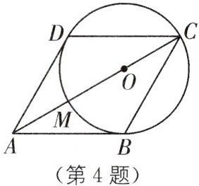 4. 如图,线段 AB 与$\odot O$相切于点 B,AO 交$\odot O$于点 M,其延长线交$\odot O$于点 C,连接 BC,$∠ABC = 120^{\circ }$,D 为$\odot O上一点且\overset{\frown}{DB}$的中点为 M,连接 AD,CD.