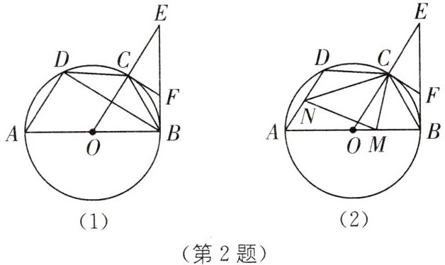 (2),连接 $BM$,$DM$,$\because \overset{\frown}{DB}$ 的中点为 $M$,