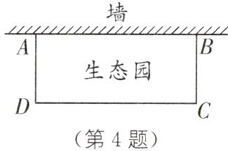 4. 为了便于劳动课程的开展,学校打算建一个矩形生态园ABCD(如图),生态园一面靠墙(墙足够长),另外三面用18m的篱笆围成.生态园的面积能否为$40m^{2}$?如果能,请求出AB的长;如果不能,请说明理由.