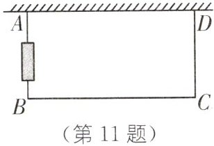 11. (2024·通辽中考)如图,小程的爸爸用一段10m长的铁丝网围成一个一边靠墙(墙长5.5m)的矩形鸭舍,其面积为$15m^{2}$,在鸭舍侧面中间位置留一个1m宽的门(由其他材料制成),则BC长为(
