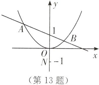 13. (2023·巴中中考)如图,在平面直角坐标系中,直线$y = kx + 1与抛物线y = \frac{1}{4}x^{2}交于A$,$B$两点,设$A(x_{1},y_{1})$,$B(x_{2},y_{2})$,则下列结论正确的个数为(