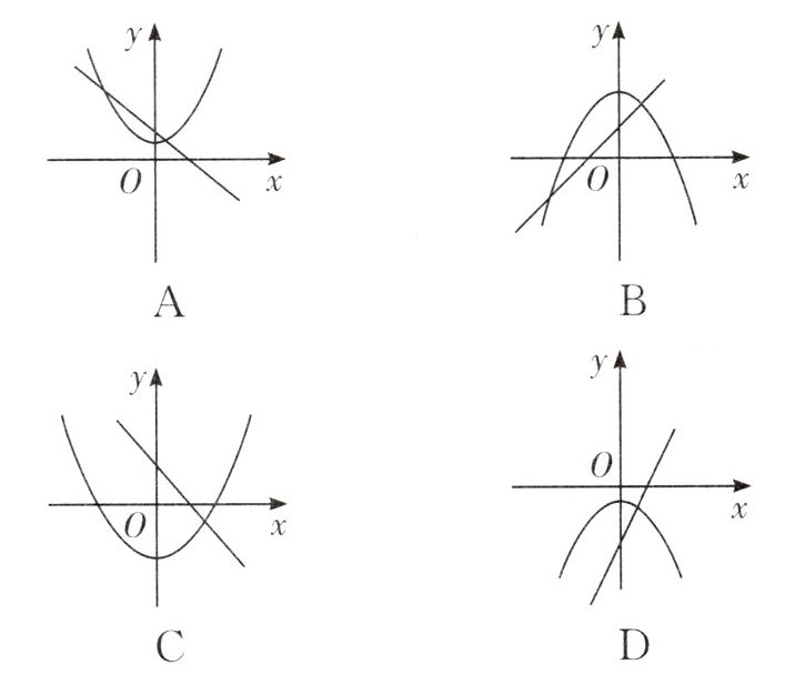 思路引导 解决二次函数图象与其他函数图象相结合问题时,先根据给定的函数或函数图象判断出一个函数关系式中系数的符号,然后判断另一个函数关系式中系数的符号,对应符号相同的即为正确选项.