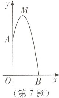 7. 教材P36例4·变式 某幢建筑物,从$\frac{20}{3}$米高的窗口A用水管向外喷水,喷的水流呈抛物线(抛物线所在平面与墙面垂直),如图,如果抛物线的最高点M离墙2米,离地面12米,求水流落地点B到墙的距离OB.