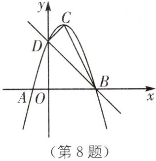 8. 如图,抛物线$y= ax^{2}+bx+c的顶点为C(1,4)$,且与y轴交于点$D(0,3)$,与x轴交于A,B两点.