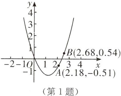 1. 如图,点$A(2.18,-0.51),B(2.68,0.54)在二次函数y= ax^{2}+bx+c(a≠0)$的图象上,则方程$ax^{2}+bx+c= 0$的一个近似值可能是(