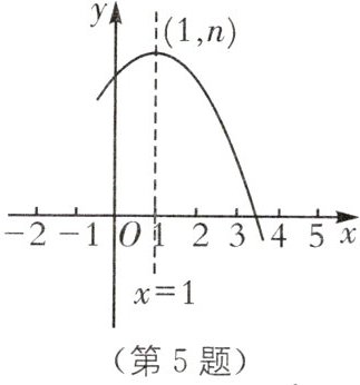 5. (2024·达州模拟)如图所示是抛物线$y= ax^{2}+bx+c(a≠0)$的部分图象,其顶点坐标为$(1,n)$,且与x轴的一个交点在点$(3,0)和(4,0)$之间,则下列结论:①$a-b+c>0$;②$3a+c>0$;③$b^{2}= 4a(c-n)$;④一元二次方程$ax^{2}+bx+c= n+1$没有实数根.其中正确的结论个数是(