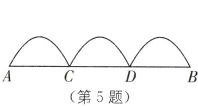 5. 某城市规划修建一座观光人行桥,此工程由桥梁工程与桥上拱形工程组成,桥上拱形工程包含三组完全相同的拱形,观光人行桥从正面看过去如图所示,已知桥面上三组拱桥都为抛物线$y= -\frac {1}{16}(x-k)^{2}+t$的一部分,拱高(抛物线最高点到桥面AB的距离)都为16米,三条抛物线依次与桥面AB相交于点A,C,D,B,则桥长$AB= $____米.