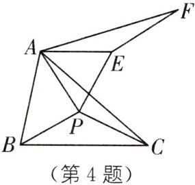 4. 如图,已知 $ ∠BAC = 60^{\circ} $,$ AB = 4 $,$ AC = 6 $,点 $ P $ 在 $ △ABC $ 内,将 $ △APC $ 绕着点 $ A $ 按逆时针方向旋转 $ 60^{\circ} $ 得到 $ △AEF $,求 $ AE + PB + PC $ 的最小值。