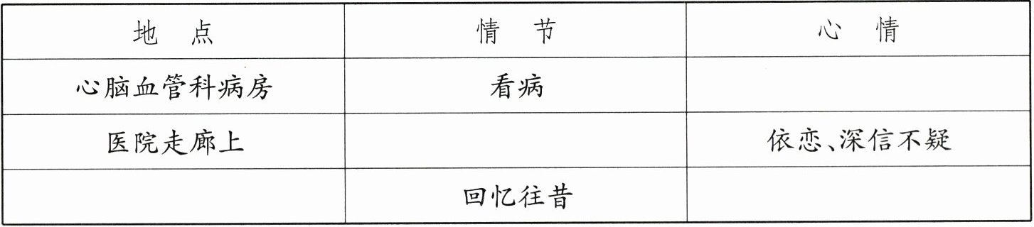 | 医院走廊上 | ______ | 依恋、深信不疑 |