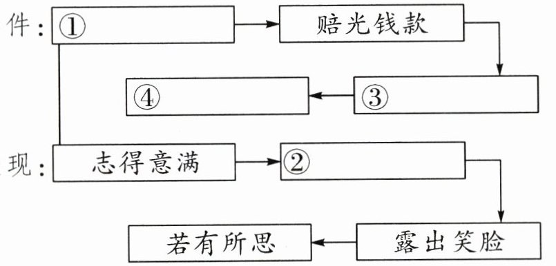 | 经历的事件 | ①______→赔光钱款→③______→④______ |