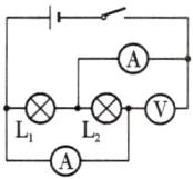 (串联/并联).闭合开关 $ S $ 后,两灯均发光,两电表均有示数,过一会儿由于某个灯泡发生故障而熄灭,电流表有示数,电压表示数为零,则故障原因是______$ L_{2} $ 短路