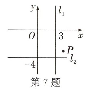 7. (2024秋·连云港期末)如图,平面直角坐标系xOy中,直线$l_{1}$过点$(3,0)$且平行于y轴,直线$l_{2}$过点$(0,-4)$且平行于x轴,点P的坐标为$(a,b)$.根据图中点P的位置,下列结论正确的是 (
