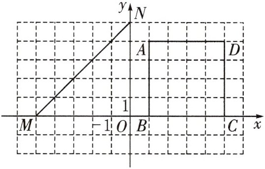 18. (2023春·射阳县期末)如图,在平面直角坐标系xOy中,点$B(1,0)$,点$C(5,0)$,以BC为边在x轴的上方作正方形ABCD,点$M(-5,0),N(0,5)$.