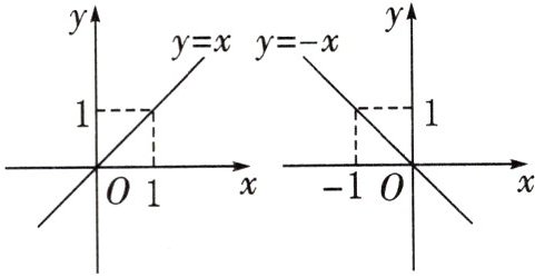 10. 数学课上,老师要求同学们画函数$ y = | x | $的图象,小红联想绝对值的性质得$ y = x ( x \geqslant 0 ) $或$ y = - x ( x \leqslant 0 ) $,于是她很快作出了该函数的图象(如图),和你的同桌交流一下,小红的作法对吗? 如果不对,试画出该函数的图象.