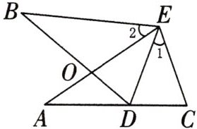 8. (2025·盘龙区模拟)如图,$∠1=∠2$,$∠A=∠B$,$AE=BE$,点D在边AC上,AE与BD相交于点O.求证:$△AEC\cong △BED$.