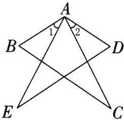 证明:$ \because \angle 1 = \angle 2 $,$ \therefore \angle 1 + \angle E A C = \angle 2 + \angle E A C $,$ \therefore \angle B A C = \angle D A E $。在 $ \triangle A B C $ 和 $ \triangle A D E $ 中,