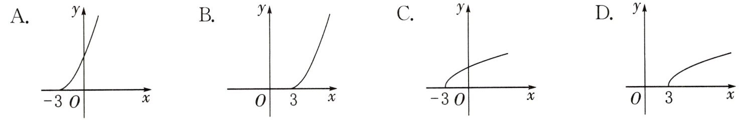 14. (2025·东海县模拟)我们知道,通过列表、描点、连线可以画出一个函数的图象.在画完函数$y=2x$的图象后,张老师给同学们提出一个问题:“不通过画图,你能解释为什么函数$y=2x$的图象经过第一、三象限吗?”聪明的小亮经过思考,给出了这样的解答:“当$x>0$时,$y=2x>0$,此时描出的点都在第一象限;当$x<0$时,$y=2x<0$,此时描出的点都在第三象限.所以函数$y=2x$的图象一定经过第一、三象限.”大家不禁为善于思考的小亮鼓掌.最后张老师又给大家留了一道思考题:下面四个图象中是函数$y=\sqrt {x+3}$的图象的是 (