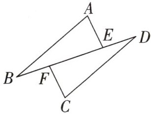 证明:$ \because A B // C D $,$ A E // C F $,$ \therefore \angle B = \angle D $,$ \angle A E B = \angle C F D $。$ \because B F = D E $,$ \therefore B E = D F $。在 $ \triangle A B E $ 与 $ \triangle C D F $ 中,