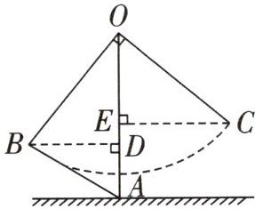 13. (2024秋·太原期中)如图,小明与爸爸、妈妈在公园里荡秋千,小明坐在秋千的起始位置A处,OA与地面垂直,两脚在地面上用力一蹬,妈妈在距地面1.2m高的B处接住他后用力一推,爸爸在C处接住他,若妈妈与爸爸到OA的水平距离BD,CE分别为1.6m和2m,$∠BOC=90^{\circ }$.求证:$△COE\cong △OBD$.