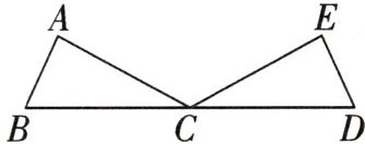 $ \because C $ 是 $ B D $ 的中点, $ \therefore B C = D C $, 在 $ \triangle A B C $ 和 $ \triangle E D C $ 中, $ \left\{ \begin{array} { l } { A B = E D, } \\ { A C = E C, } \\ { B C = D C, } \end{array} \right. $ $ \therefore \triangle A B C \cong \triangle E D C ( S S S ) $