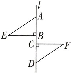 证明:$\because BE \perp l$,$CF \perp l$,$\therefore ∠ABE = ∠DCF = 90^{\circ}$。$\because AC = BD$,$\therefore AC - BC = BD - BC$,即 $AB = CD$。又$\because AE = DF$,$\therefore \triangle ABE \cong \triangle DCF$(