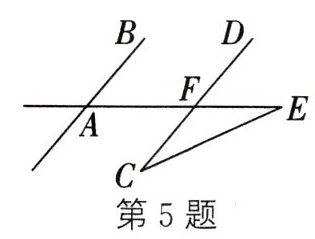 5. 某城市几条道路的位置关系如图所示,道路 $ AB // CD $,道路 $ AB $ 与 $ AE $ 的夹角 $ \angle BAE = 50^{\circ} $。城市规划部门想新修一条道路 $ CE $,要求 $ CF = EF $,则 $ \angle E $ 的度数为 (