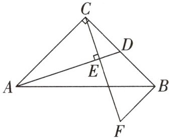 14. 如图所示,在 $ \text{Rt} \triangle ABC $ 中,$ \angle ACB = 90^{\circ} $,$ AC = BC $,$ D $ 为 $ BC $ 边上的中点,$ CE \perp AD $ 于点 $ E $,$ BF // AC $ 交 $ CE $ 的延长线于点 $ F $,求证:$ AB $ 垂直平分 $ DF $。