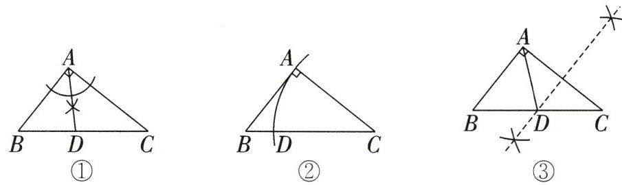 1. (2024 秋·扎兰屯市期末)在$\triangle ABC$中,已知$∠BAC=90^{\circ },AB≠AC$,若用无刻度的直尺和圆规在 BC 上找一点 D,使$\triangle ACD$是等腰三角形,则下列作法中,正确的有 (