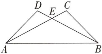 证明:在$\triangle ADB$和$\triangle BCA$中,$AD = BC$,$AC = BD$,$AB = BA$,$\therefore \triangle ADB \cong \triangle BCA$(SSS),$\therefore \angle DBA = \angle CAB$,$\therefore AE = BE$,$\therefore \triangle EAB$是等腰三角形.