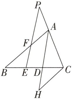 14. (2023 秋·枣阳市期末)如图,在$\triangle ABC$中,AD 平分$∠BAC$,E 是 BC 上一点,$BE=CD$,$EF// AD$交 AB 于 F 点,交 CA 的延长线于 P,$CH// AB$交 AD 的延长线于点 H.