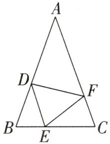 证明:$\because AB = AC$,$\therefore \angle ABC = \angle ACB$,在$\triangle DBE$和$\triangle ECF$中,$\begin{cases} BE = CF, \\ \angle ABC = \angle ACB, \\ BD = CE, \end{cases}$$\therefore \triangle DBE \cong \triangle ECF$(SAS),$\therefore DE = EF$,$\therefore \triangle DEF$是等腰三角形;