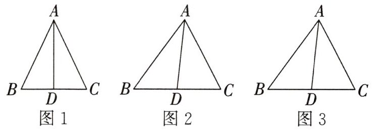 ②如图 3,若$AB≠AC$,当$AB>AC$时,$∠BAD$______$∠CAD$.(填“>”“<”或“=”)
