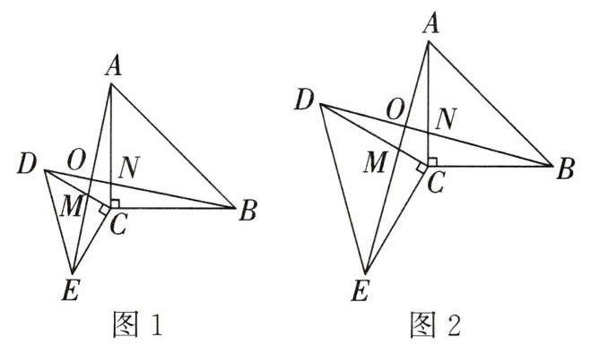 13. (2023 秋·川汇区期中)已知:$△ACB$和$△DCE$都是等腰直角三角形,$∠ACB=∠DCE=90^{\circ }$,连接 BD,AE 交于点 O,AE 与 CD 交于点 M,AC 与 BD 交于点 N.