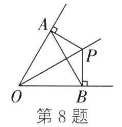 8. 如图,OP平分$∠AOB$,$PA⊥OA$,$PB⊥OB$,垂足分别为点A,B.则下列结论中不一定成立的是(