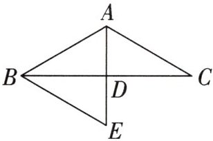 证明:$∵$ 点 $D$ 为 $BC$ 的中点,$AD ⊥ BC$,$∴$ 直线 $AD$ 为线段 $BC$ 的垂直平分线,$∴ BA = CA$,由 (1) 可知:$△BDE ≌ △CDA$,$∴ BE = CA$,$∴ BA = BE$