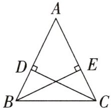 $∵ CD ⊥ AB$,$BE ⊥ AC$,$∴ ∠AEB = ∠ADC = 90 ^ { \circ }$ 在 $△ABE$ 和 $△ACD$ 中,$\left\{ \begin{array} { l } { ∠AEB = ∠ADC, } \\ { ∠BAE = ∠CAD, } \\ { AB = AC, } \end{array} \right. ∴ △ABE ≌ △ACD ( AAS )$