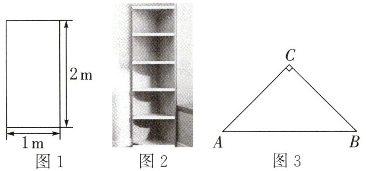 (2)新房装修完后,要在卧室墙角放一个横截面是一个等腰直角三角形(图2)的立柜,截面如图3,腰长为$\sqrt{2}$m,小明家通往卧室的过道宽为1.05m,这个立柜能通过吗? 请通过计算进行说明.