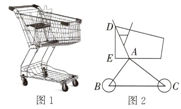 (2)若购物车上篮子的左边缘D与点A的距离$AD=13dm,AE=5dm$,且$AE⊥DE$,$AE$和BC都与地面平行,求购物车上篮子的左边缘D到地面的距离.
