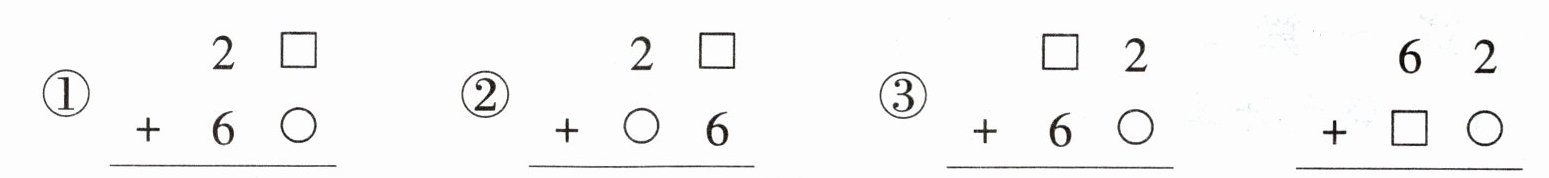 $78 - 26 = \bigcirc 2$ $68 + 15 = \bigcirc 3$ $42 + 3\bigcirc = 81$