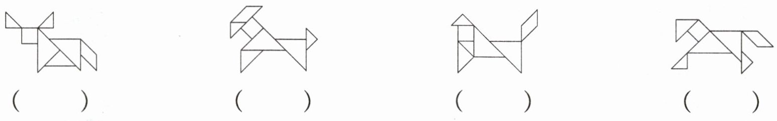 五、下面是用七巧板拼成的十二生肖中的动物,猜猜它们分别是什么。